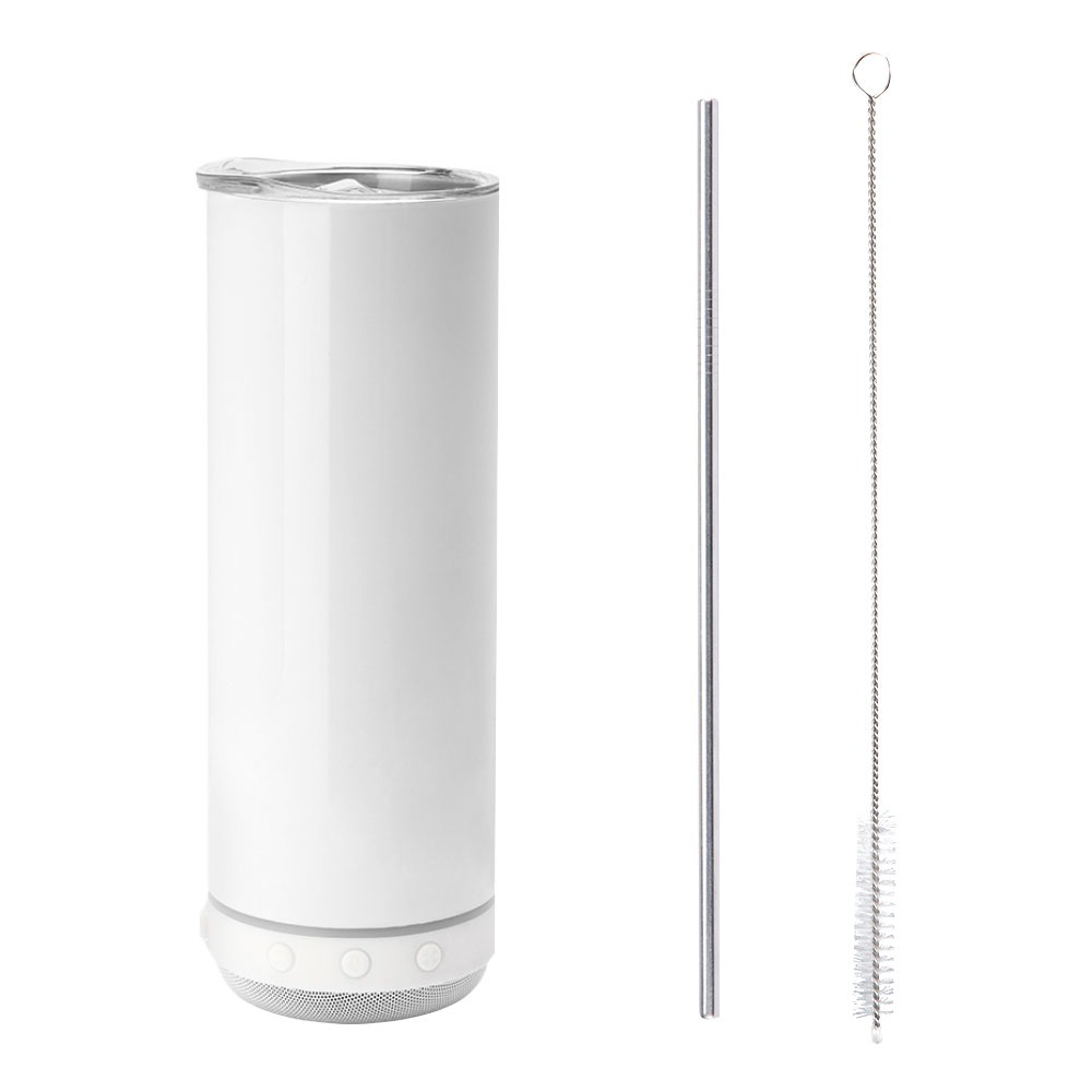 Your customers will be the life of the party with this stainless steel tumbler with built-in Bluetooth speaker! This functional, double wall skinny tumbler comes with a metal straw and cleaning brush, and it can be personalized with sublimation or vinyl. Customize with a brand logo or personalize with a name to create a one-of-a-kind tumbler for your customers.
