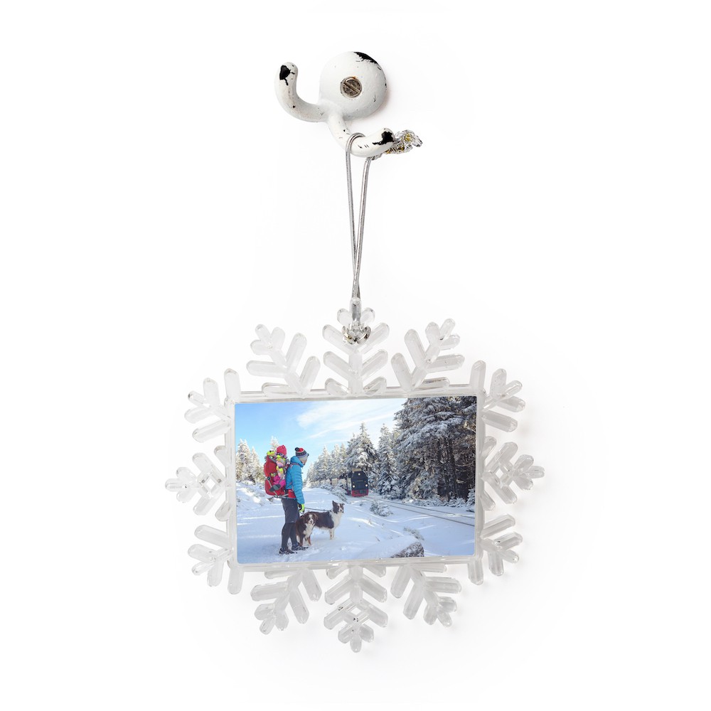 Customize this snowflake ornament with a family photo or favorite design and spruce up for the holiday season. This ornament is designed for sublimation and has a print area of 3.35" x 2.48". Don't miss the opportunity to be prepared for the holiday season!